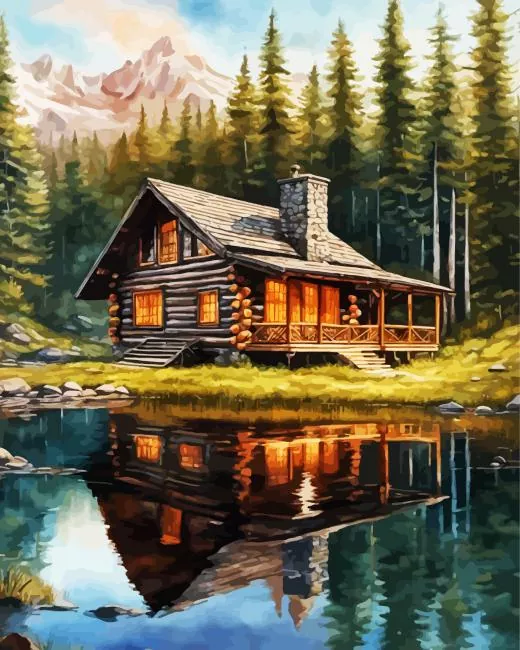 Aesthetic Forest Log Cabin Diamond Painting