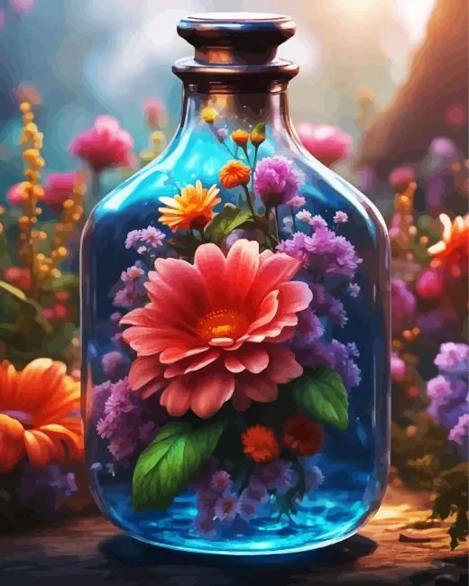 Aesthetic Glass Bottle With Flowers Art Diamond Painting