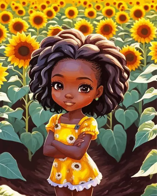 Black Girl In Sunflower Field Diamond Painting