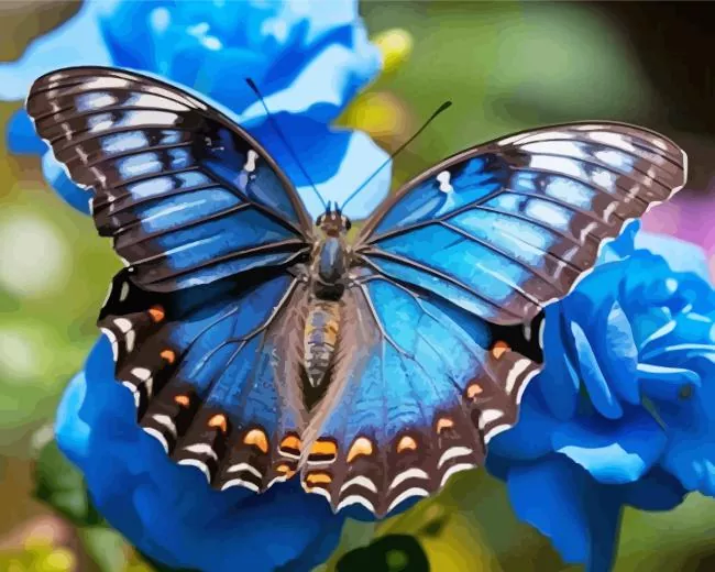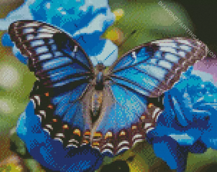 Blue Butterfly And Flowers Diamond Painting
