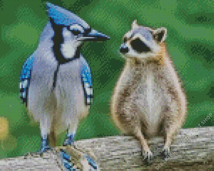 Blue Jay Bird And Raccoon Diamond Painting is a great choice to spend some quality time with your loved ones, not only that but it can also be a wonderful gift! Whether you are a beginner or an experienced artist, diamond painting offers you space to chill and express yourself.