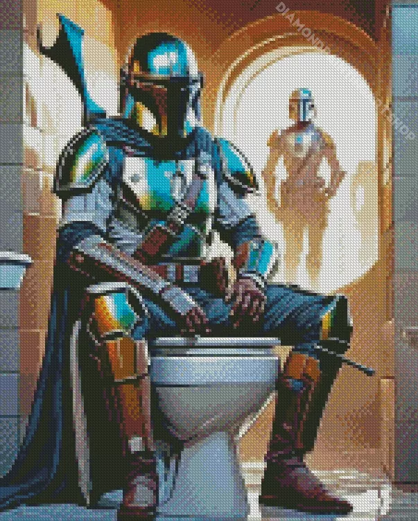 Boba Fett In Bathroom Diamond Painting is a great choice to spend some quality time with your loved ones, not only that but it can also be a wonderful gift! Whether you are a beginner or an experienced artist, diamond painting offers you space to chill and express yourself.