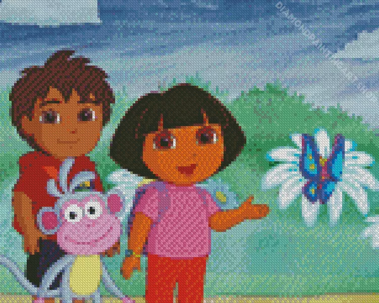 Boots Dora And Diego Diamond Painting is a great choice to spend some quality time with your loved ones, not only that but it can also be a wonderful gift! Whether you are a beginner or an experienced artist, diamond painting offers you space to chill and express yourself.
