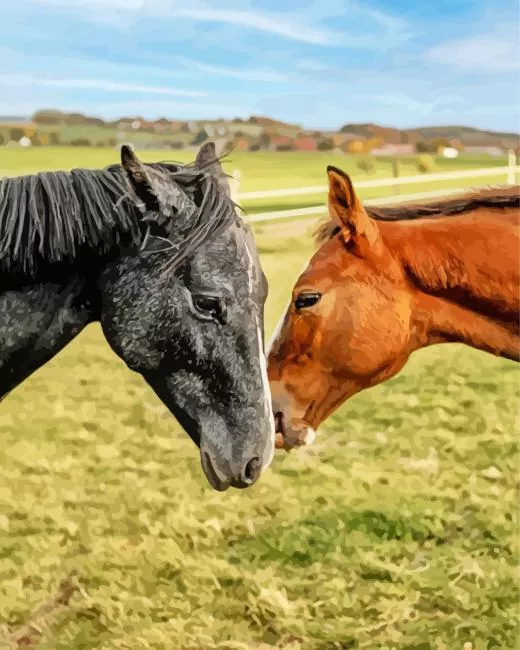 Brown And Black Horses Diamond Painting