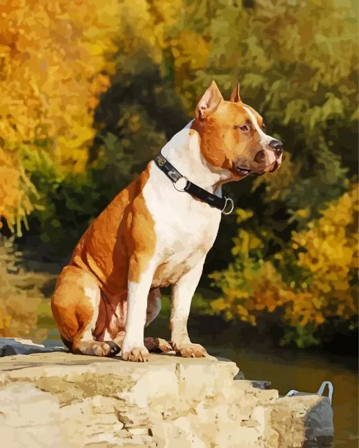 Brown And White Staffordshire Bull Terrier Diamond Painting