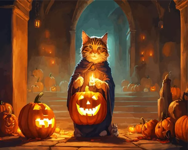 Cat Pumpkin Diamond Painting