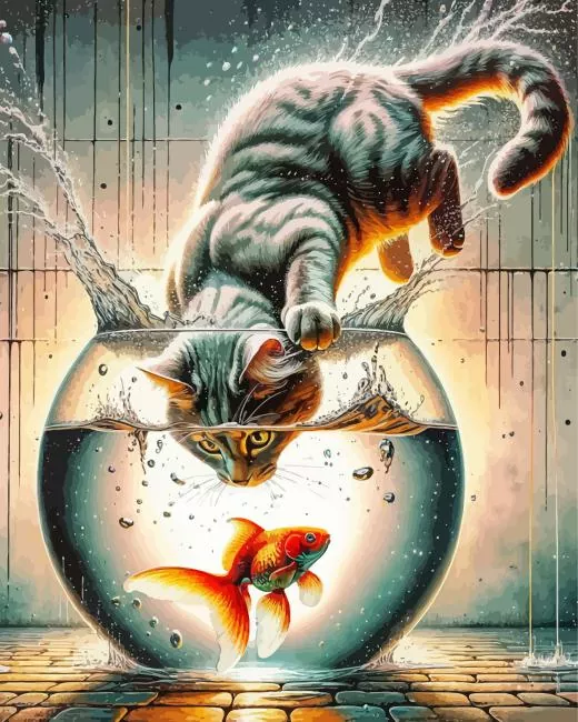 Cat In Fish Bowl Diamond Painting
