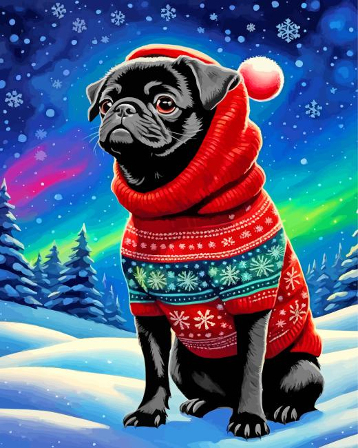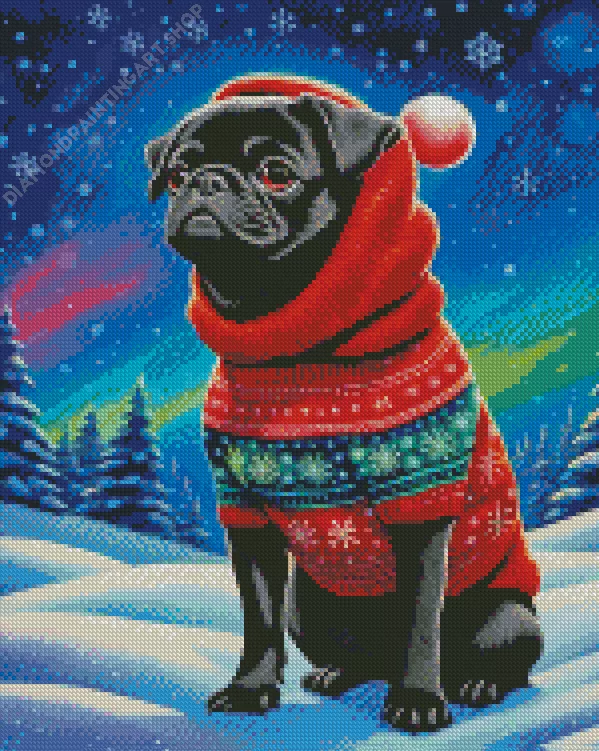 Christmas Black Pug Puppy Diamond Painting