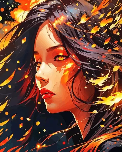 Fire And Girl Diamond Painting
