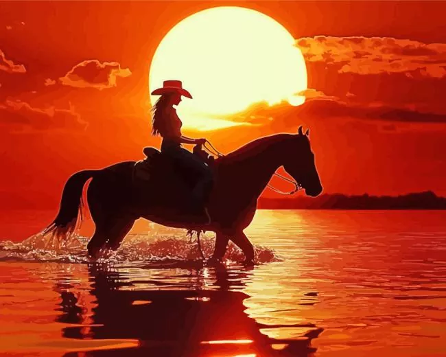Girl Horse Silhouette Sunset Diamond Painting