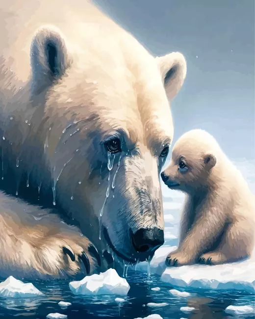 Sad Mother Polar Bear Diamond Painting