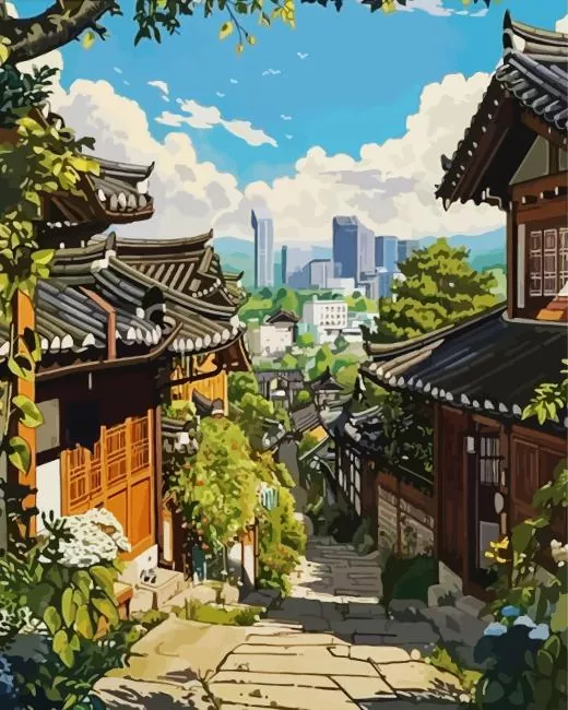 Seoul Bukchon Hanok Village Poster Diamond Painting