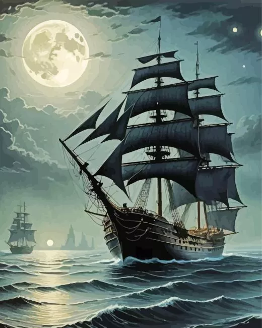 Ship In The Moonlight Art Diamond Painting