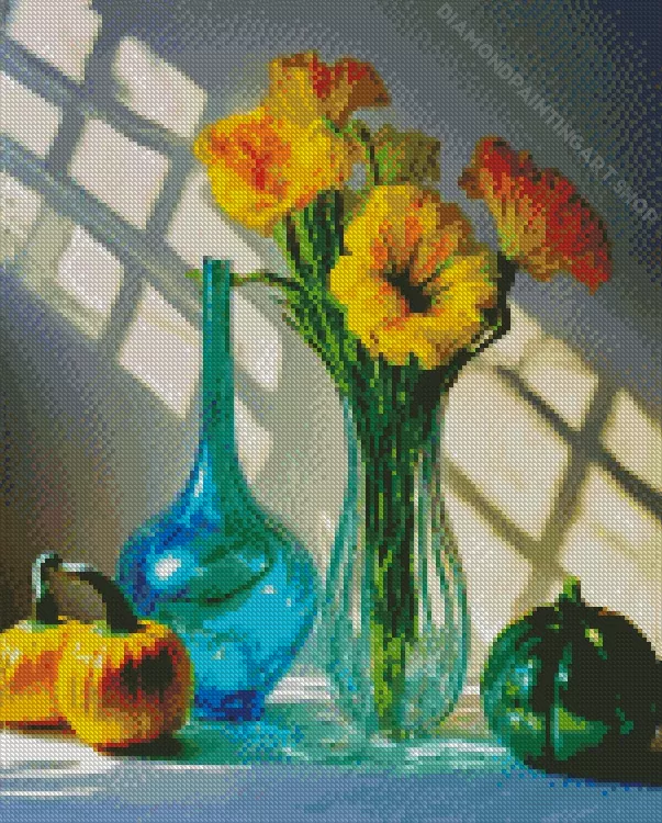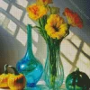 Yellow Flowers In Blue Glass Vases Diamond Painting